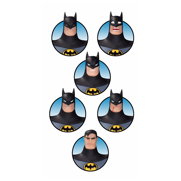 Is Batman confused? Angry? Happy? No. Not the last one. The Dark Knight is never happy. But with this new Batman Expressions Pack, you can put a whole new face on your Batman action figures from the Batman: The Animated Series line! These interchangeable heads and capes, based on designs from the show's creators, are fully compatible with any Batman figure from his Bruce Timm and Paul Dini created adventures! Figure stands 6" tall and includes 30 points of articulation. Sculpted by Irene Matar/Jay Kushwara.