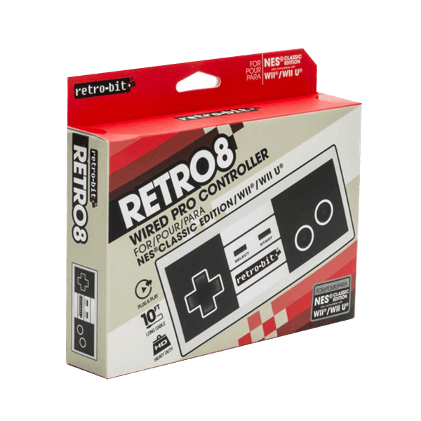 Need another player to go head to head on a Nintendo® title? Or need additional room for comfort? Retro-Bit® has got you covered with this wired controller supported by a 10-foot cord, compatible with the NES® Classic, Wii® and Wii U®.